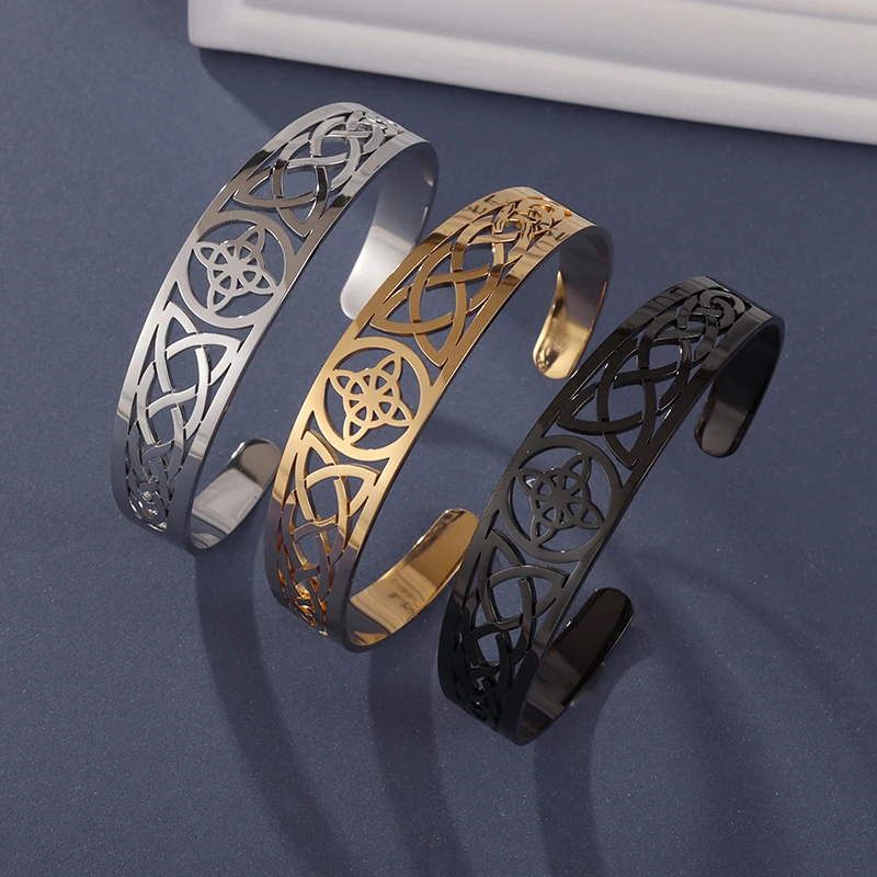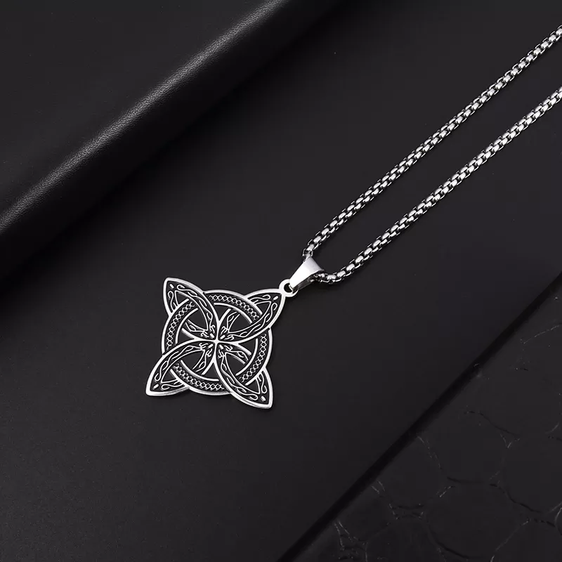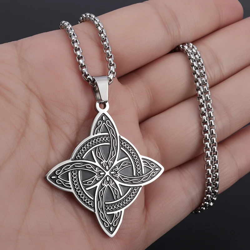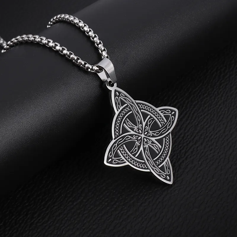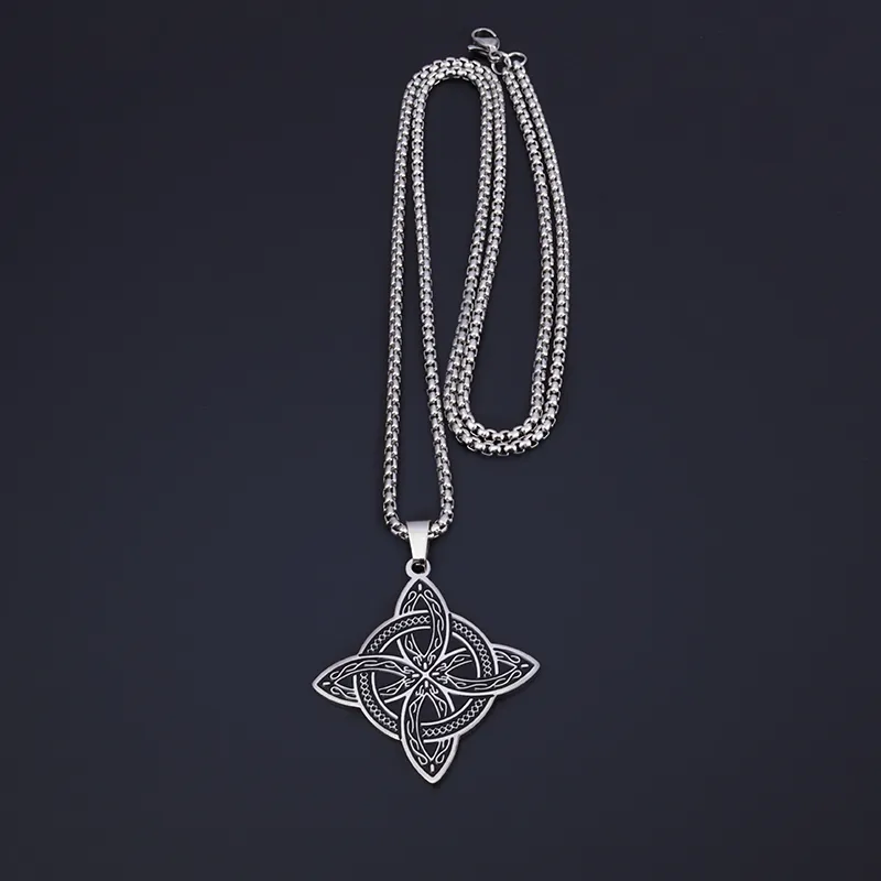 Stainless Steel Silver Color Pattern Witch Knot Pendant Necklace Celtic Knot Lucky Jewelry Gift for Friends Family